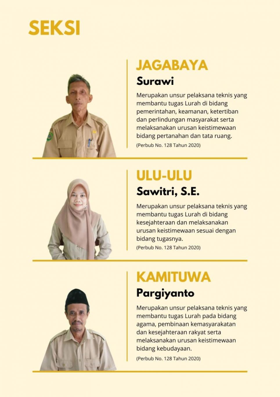 - Melaksanakan Peraturan Kalurahan, Peraturan Lurah dan Keputusan Lurah;