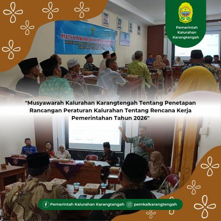 Badan Permusyawaratan Kalurahan (Bamuskal) karangtengah melaksanakan Musyawarah Kalurahan tentang penetapan Rancangan Peraturan Kalurahan tentang Rencana Kerja Pemerintahan Kalurahan Karangtengah Tahun 2026 di Aula Kalurahan Karangtengah pada Rabu (24/9). Kegiatan ini dihadiri oleh Pemerintah Kapanewon Imogiri, dalam hal ini Ibu Jawatan Pemerintahan, Pendamping Kalurahan, Pamong Kalurahan, Unsur Lembaga Kalurahan, perwakilan tokoh agama, dan tokoh masyarakat.