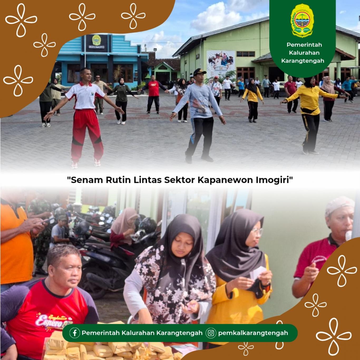 Turut hadir seluruh perwakilan sektor se-Kapanewon Imogiri, yang meliputi instansi pemerintah, pendidikan, kesehatan, kepolisian, TNI, serta organisasi kemasyarakatan. Turut hadir Bapak Lurah Karangtengah, Bapak Haryanto, beserta seluruh staf Pamong Kalurahan Karangtengah. Suasana penuh semangat tercipta saat semua peserta dari berbagai sektor bergerak bersama mengikuti irama senam, menjadikan kegiatan ini lebih dari sekadar olahraga.